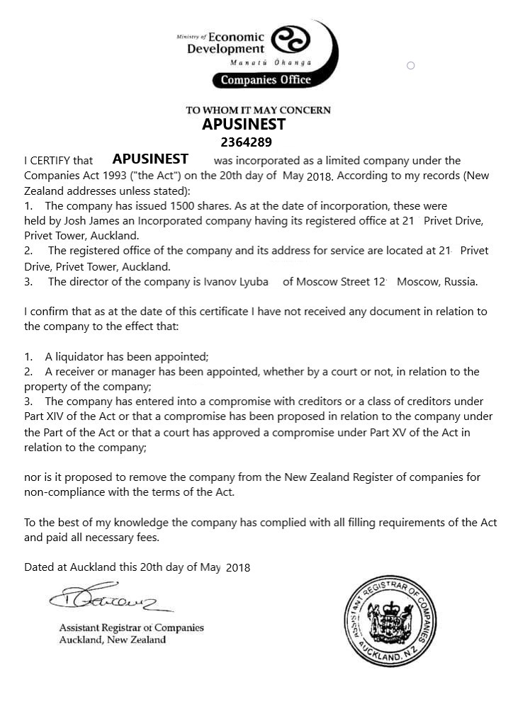 We are a legal company registered in New Zealand providing our services to the members all around the world.